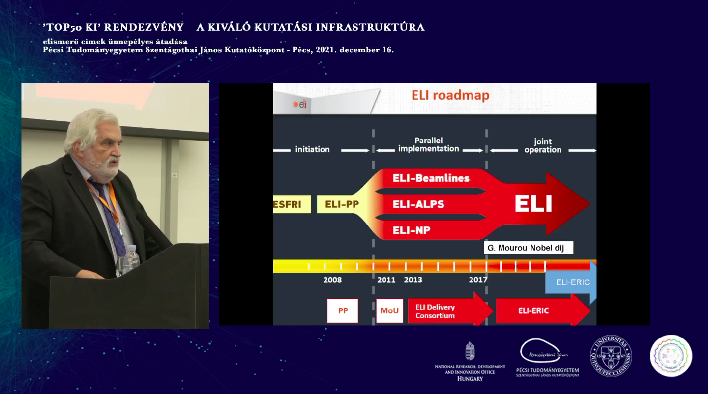 This year was the first time that Hungary’s prominent research facilities with great scientific and economic importance were presented this recognition upon the initiative of NKFIH. At the ceremonial event, Prof. Gábor Szabó, Managing Director of our research centre, gave a presentation about ELI as an international key research infrastructure.