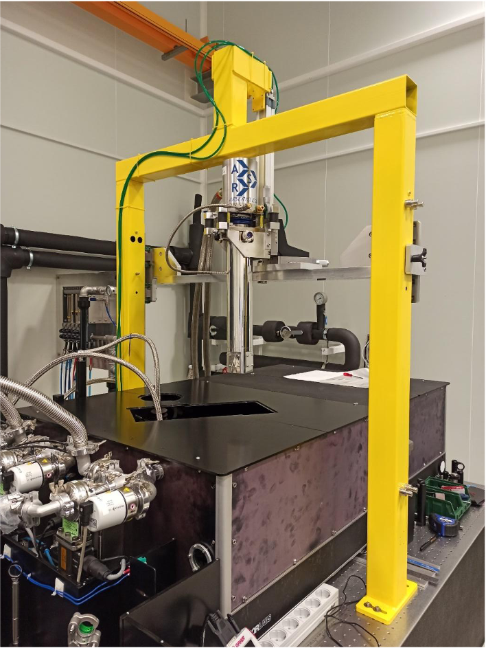 The NLTSF (Nonlinear Terahertz Spectroscopy Facility) consists of two main units: a multi-mJ femtosecond pump laser and the THz pump—THz probe system. It enables time-resolved studies of THz-induced phenomena by using a strong THz pulse to trigger changes in the sample and a weaker THz pulse to detect these changes.
